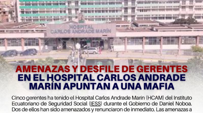 Cinco gerentes ha tenido el Hospital Carlos Andrade Marín (HCAM) del Instituto Ecuatoriano de Seguridad Social (IESS) durante el Gobierno de Daniel Noboa. Dos de ellos han sido amenazados y renunciaron de inmediato.