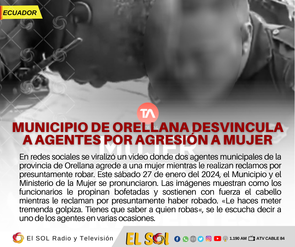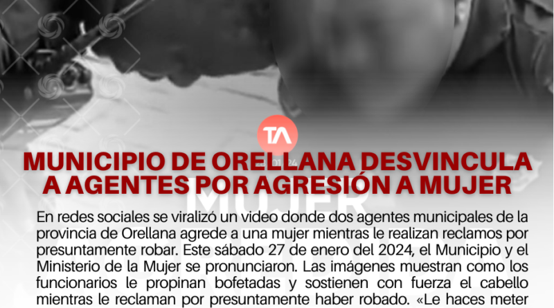 En redes sociales se viralizó un video donde dos agentes municipales de la provincia de Orellana agrede a una mujer mientras le realizan reclamos por presuntamente robar. Este sábado 27 de enero del 2024, el Municipio y el Ministerio de la Mujer se pronunciaron.